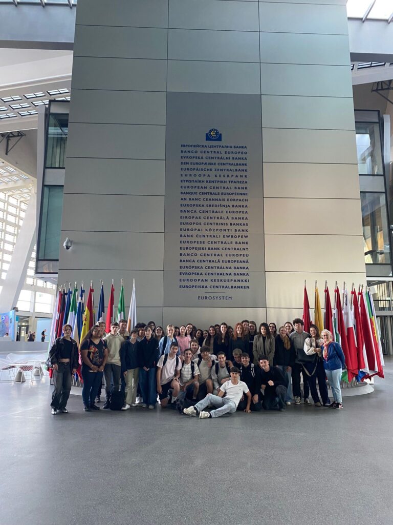 Après une présentation des fonctions de la BCE, dans le cadre de la zone euro réalisée par un groupe d’élèves, nous avons visité cette institution. La Guide nous a expliqué le rôle des taux d’intérêt directeur dans la politique monétaire de l’UEM. l’après-midi été consacré à la visite de Francfort-sur-le-Main. Alexis, Orphelia, Anna,Oceane, Marion, E Enola et Stacy ont pris en charge leur camarade pour les guider dans les rues de Francfort sur le Main et leur expliquer l’histoire économique et sociale de cette ville. Une première journée qui a enthousiasmé nos élèves.