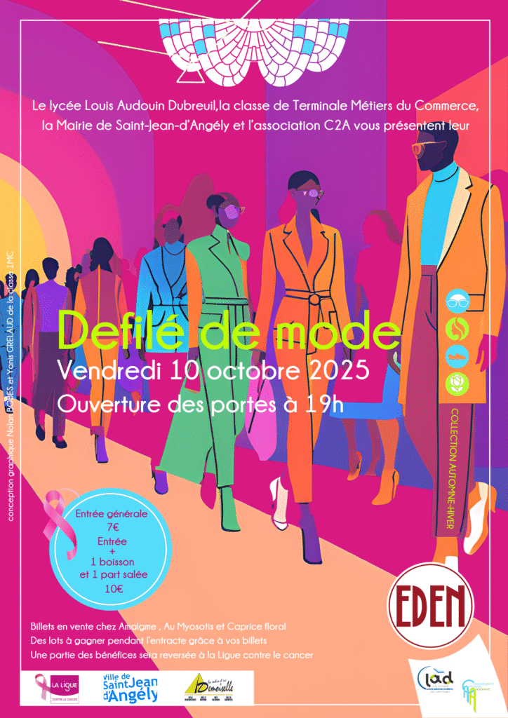 Co-organisé avec l’Association des Commerçants C2A, ce défilé sera aussi l’occasion pour les lycéens de se mobiliser dans le cadre des manifestations d’Octobre Rose organisées par la ville de Saint-Jean-d’Angély.